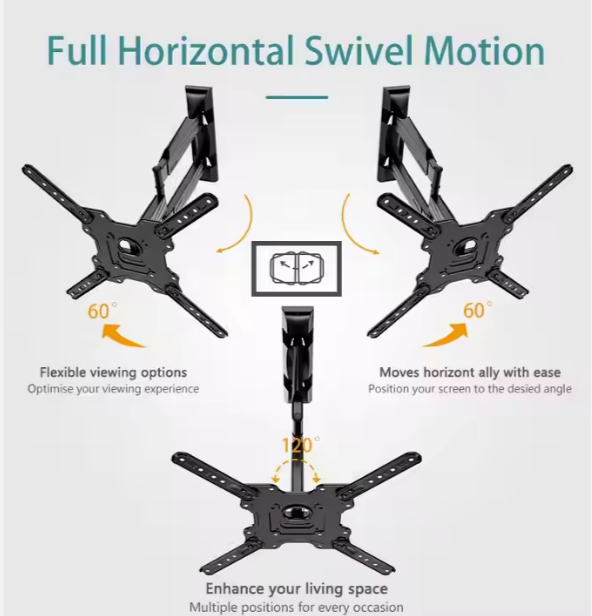 Óptima flexibilidad de visión para máxima comodidad. Aumenta tu ángulo de visión con nuestro soporte totalmente articulado, diseñado para televisores con pantallas planas y curvas de 32 a 60 pulgadas. Este soporte de excelente calidad es ideal para instalar sistemas de cine en el hogar, ya que te permitirá ubicar la pantalla de tu televisor en un ángulo de visión óptimo, sin importar si estás sentado, de pie o reclinado en el sofá. Cuenta con una estructura metálica duradera, una base giratoria y cuatro extensiones para acomodar patrones de montaje de pantallas de mayor tamaño. Este práctico soporte, compatible con VESA, es muy fácil de instalar, de modo que podrás configurarlo y comenzar a disfrutar de tus películas y programas favoritos en sólo minutos.